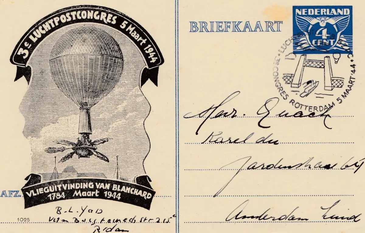Pays-Bas: 1944: Ballonpost . Luchtpostcongres Rotterdam