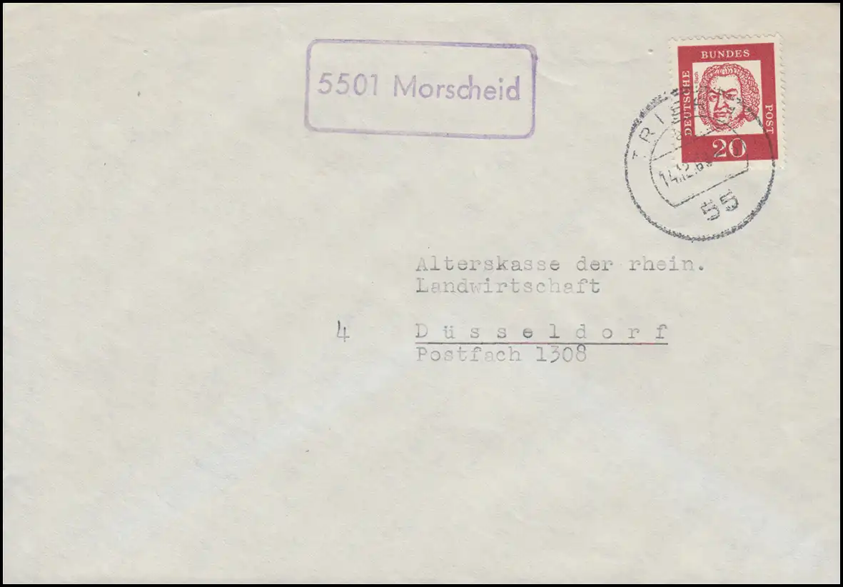 Pays-Bas 5501 Morscheid sur lettre TRIER 14.12.1963 à Düsseldorf
