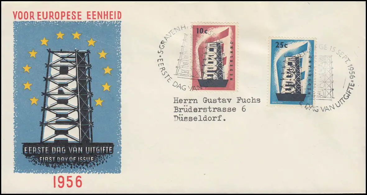 Pays-Bas 683-684 EUROPE / CEPT 1956 sur le Bijoux-FDC à Düsseldorf
