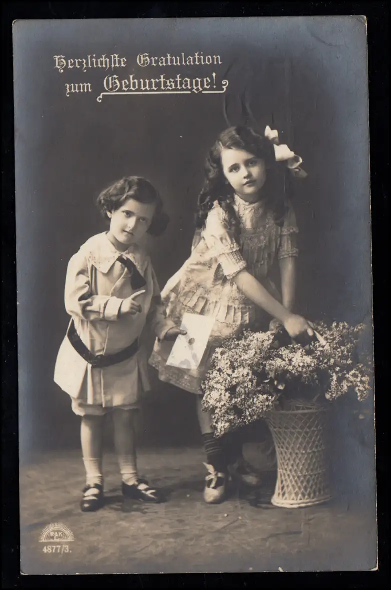 Pays-Bas AK Félicitations anniversaire: Fille avec panier à fleurs, WAALWIJK 23.3.12
