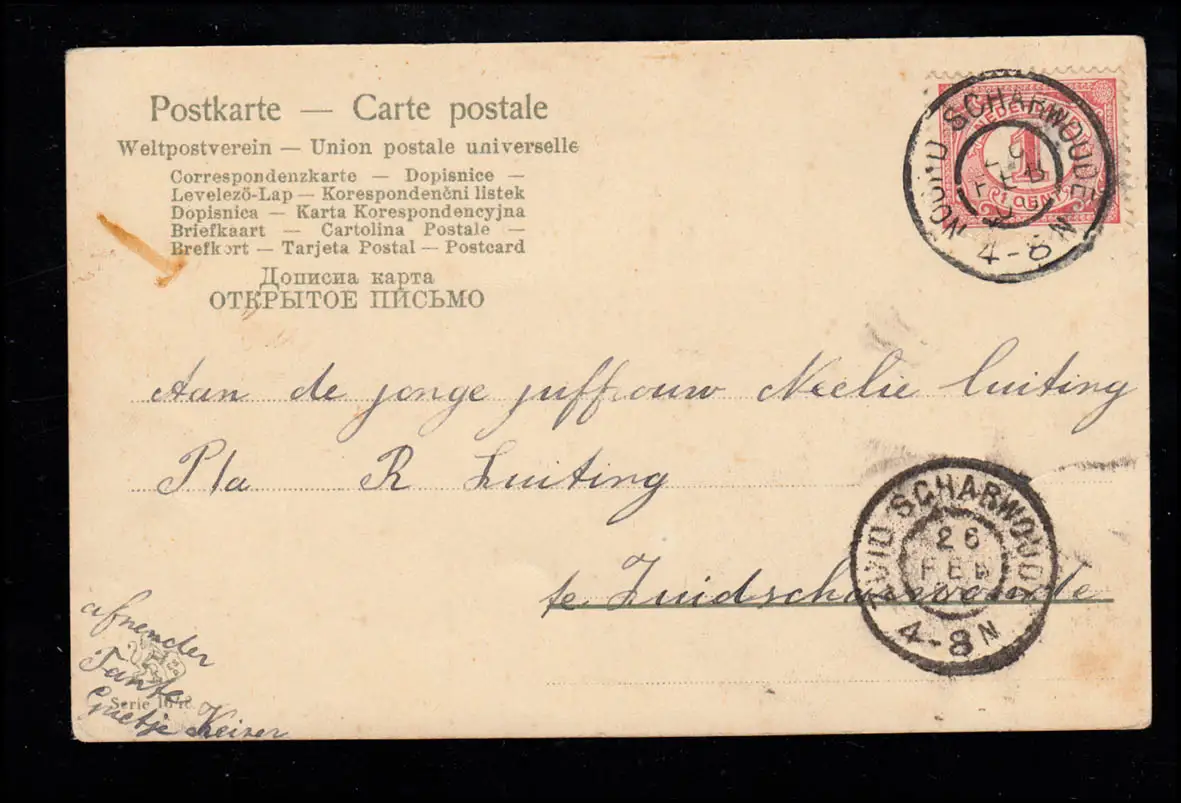 Carte de blague humoristique Satire /Tampon d'arrivée SUID SHARWOUDE 26.2.00 Vérification: original Référence produit: 00000000045679