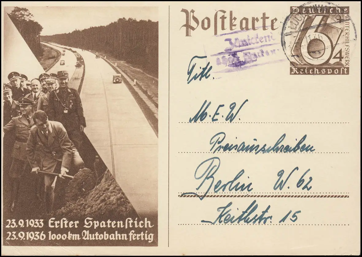 Pays-Bas Jänickendorf via LUCKENWALDE 2.11.36 sur carte postale spéciale