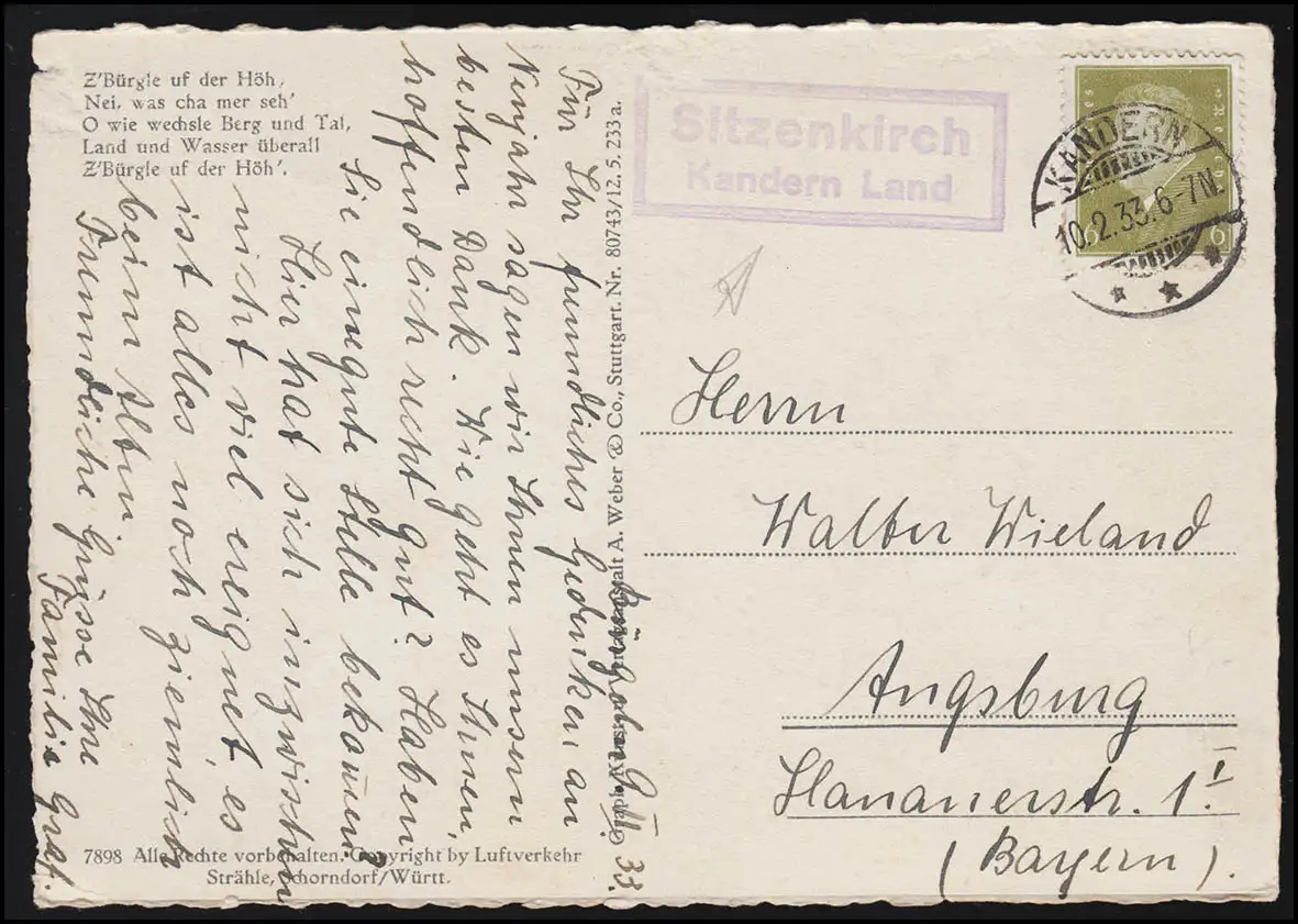 Pays-Bas SITZNKIRCH KANDERN 10.2.1933 sur photo aérienne Château Bürgeln Schwarzwald