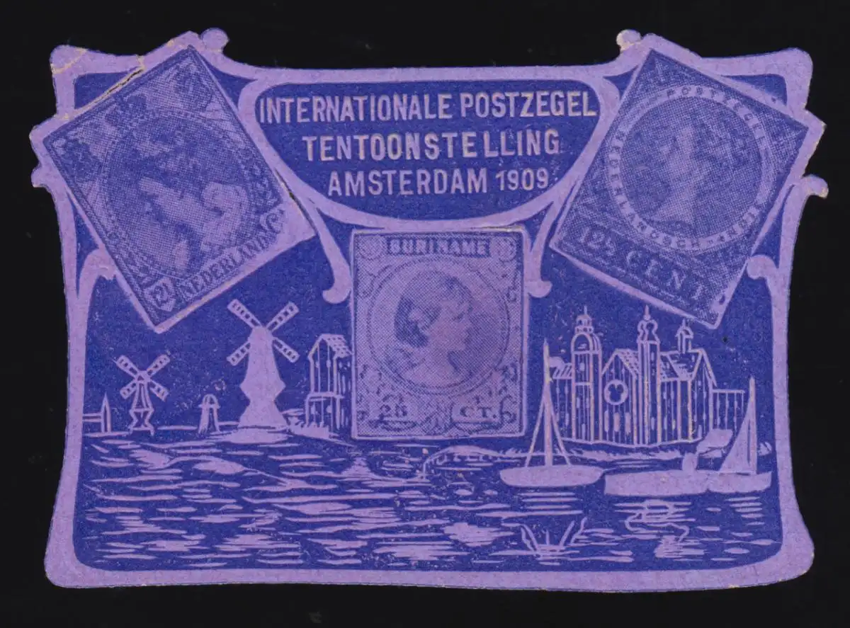 Pays-Bas Vignette d'exposition moulins à vent Amsterdam 1909 o.G./Falz
