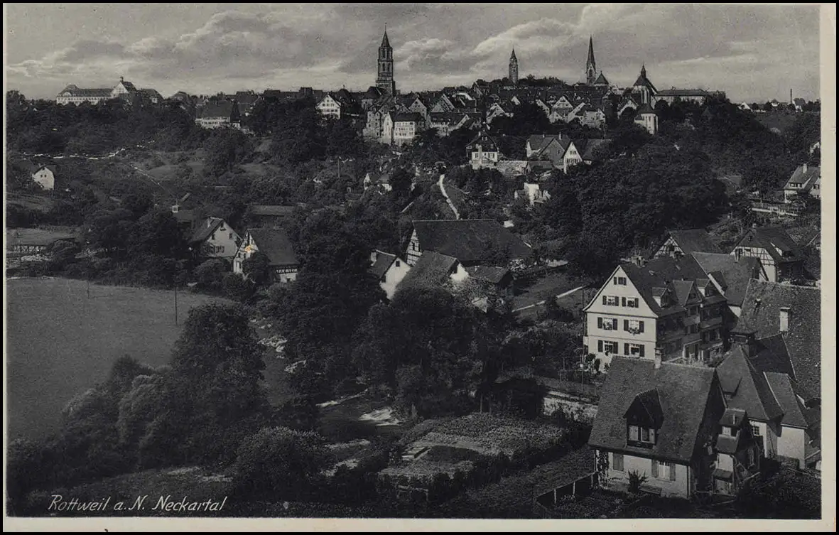 Pays-post Continuez à travers les rainures sur ROTTWEIL vers 1950 AK Vue de la ville Rottweil