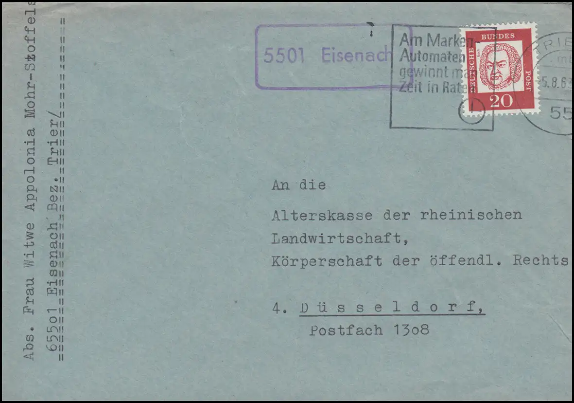 Payspost 5501 Eisenach sur lettre TRIER 5.8.1963 à Düsseldorf