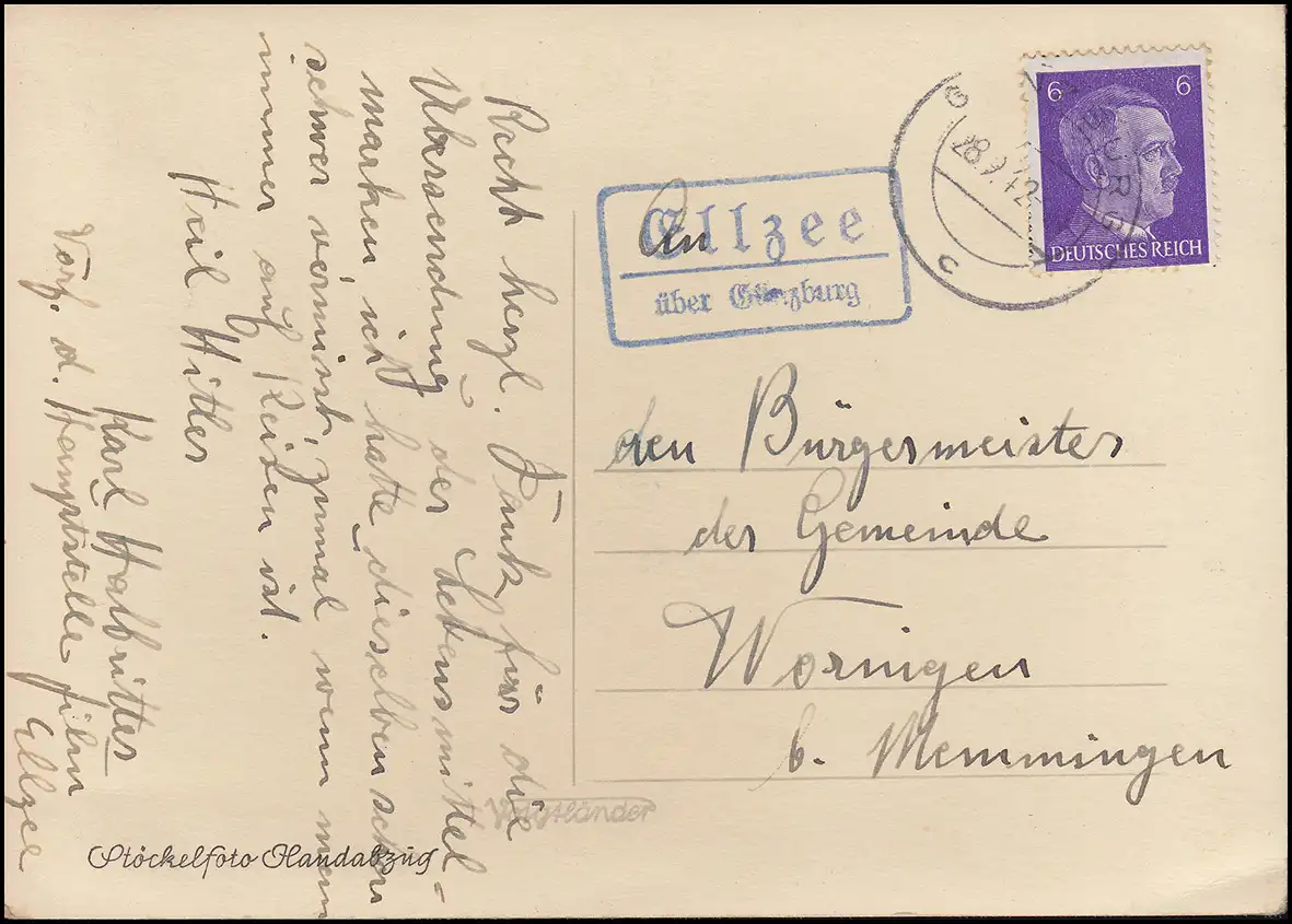 Payspost Ellzee sur GALZONEURG 28.2.1942 sur carte de l'église