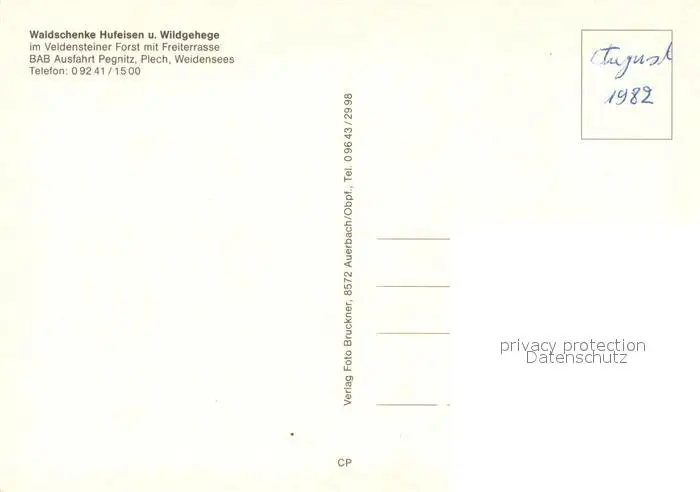Pegnitz Waldschenke Hufeisen Wildgehege Terrasse Gaststube Pegnitz postalisch nicht gelaufen 1982 Erhaltung siehe scans [WerneD78] WernPID7