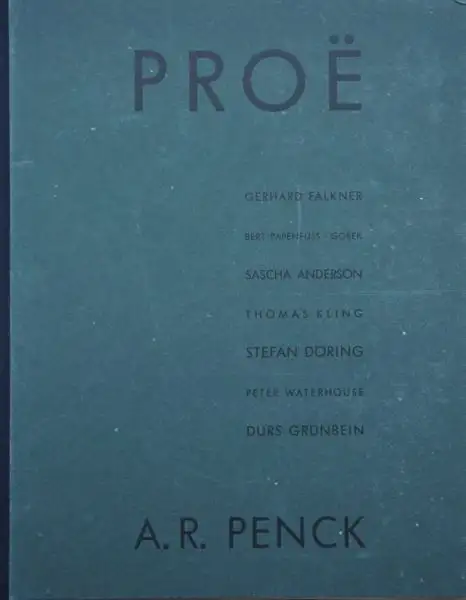 S. Anderson, Berlin, 1991. Gr.-2°. Impression de presse numérotée et signée dans une édition de 50 ex... et 10 exemplaires d'artistes. (Ici: n°10 de50) Avec des poèmes et des textes de Gerhard Falkner, Bert Papenfuss-Gorek, Sascha Andersons, Thomas Kling, Stefan Döring, Peter Waterhouse et Dur Grünbein. Le titre sonore PROË est un mot d 'art des premières syllabes de poésie et de prose qui apporte le concept d\'anthologie à la formule la plus courte: sept jeunes auteurs dÂ'Allemagne orientale et occidentale sont représentés avec un prosatext poétologique ainsi que trois à quatre poètes; les graphiques concà ̈dentiels très beaux dâ A.R. Penck ajouteront aux textes un autre niveau esthÃ'tique.