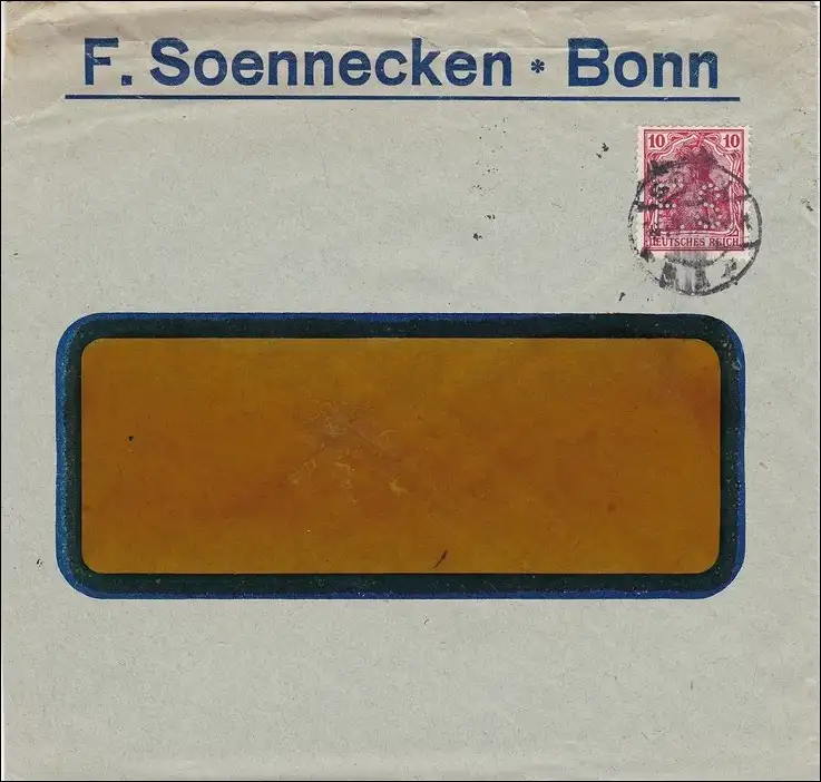 Perfin: Lettre de Bonn, F. Soennecken, S.F.