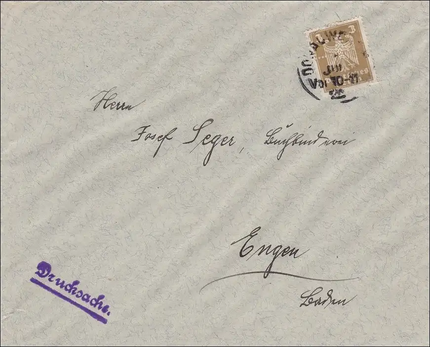 Perfin: Lettre de Donauwörth, librairie Ludwig Auer, L.A.