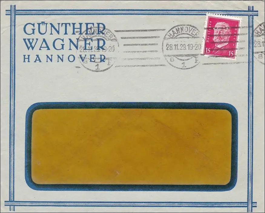 Perfin: Lettre de Hanovre, Günther Wagner, 1929 GW