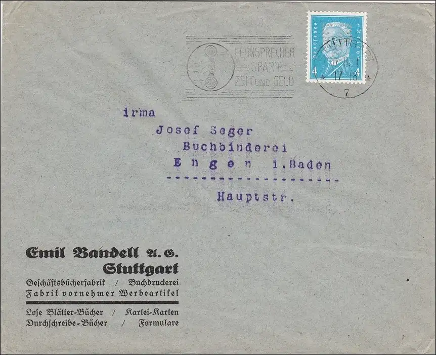 Perfin: Lettre de Stuttgart, Emil Ban dell, EB,