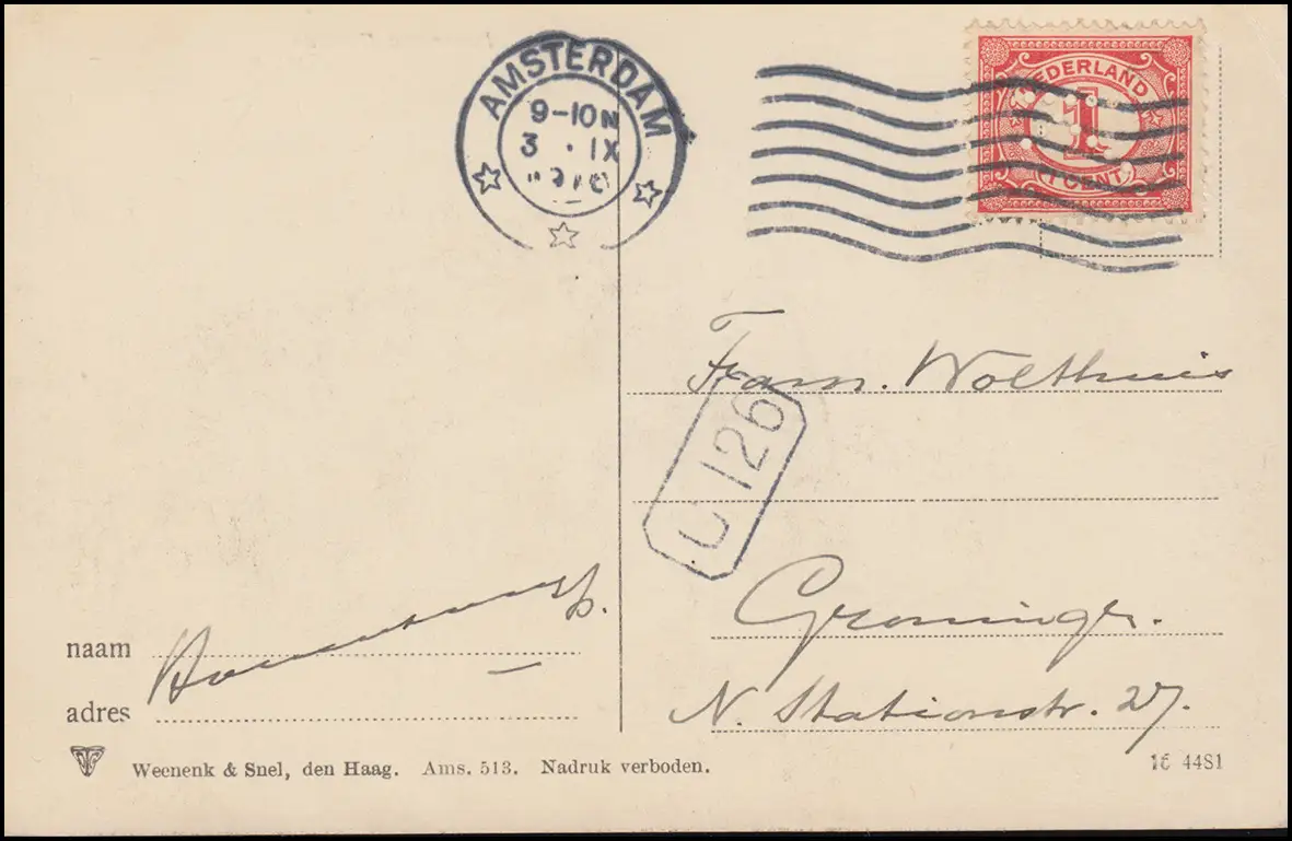 Perforation/Perfin K à 50 points 1 centimètre Carte de vue Panorama d'Amsterdam