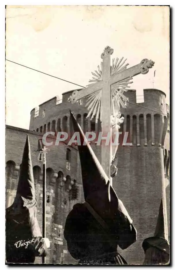 Perpignan Cartes postales Semaine sainte en Roussillon La procession de la SAnch Penitents devant le Castellet
