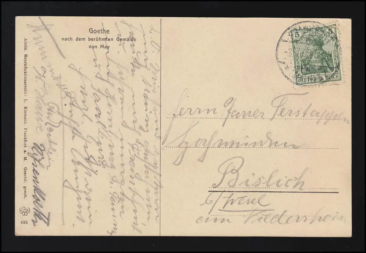 Personnalités AK Portrait de GOETHE, Georg Oswald May, FRANKFURT Main 3.7.1909