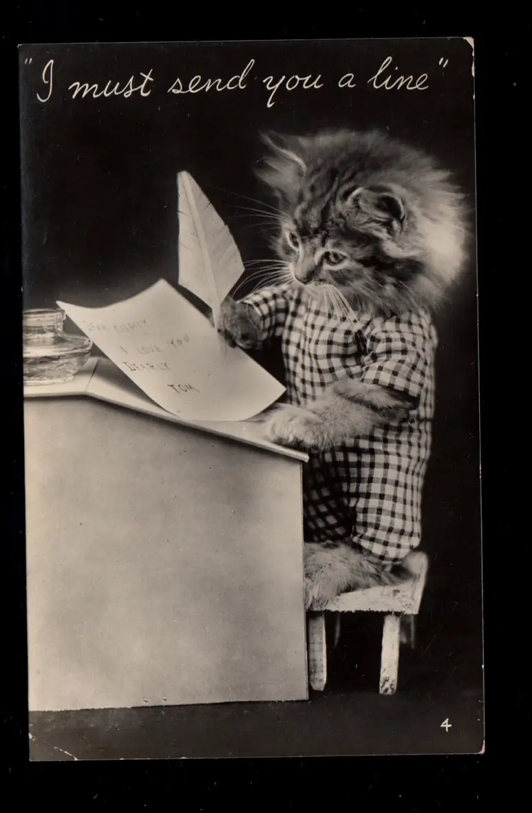 Photo AK Animaux Menus: Chat debout à la lettre, 1955