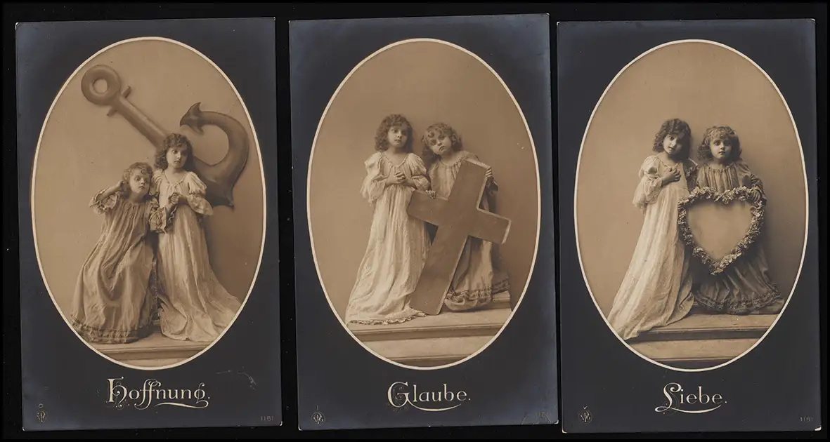 Photo AK Ensemble d'amour Foi espoir, enfants avec des symboles, NBG n ° 1161, inutilisé