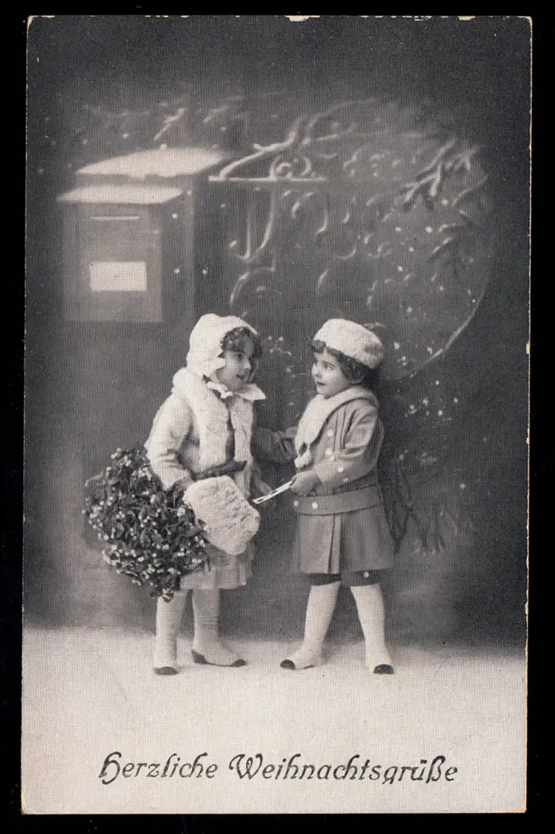 Photo AK Noël: Fille et garçon devant boîte aux lettres, inutilisé