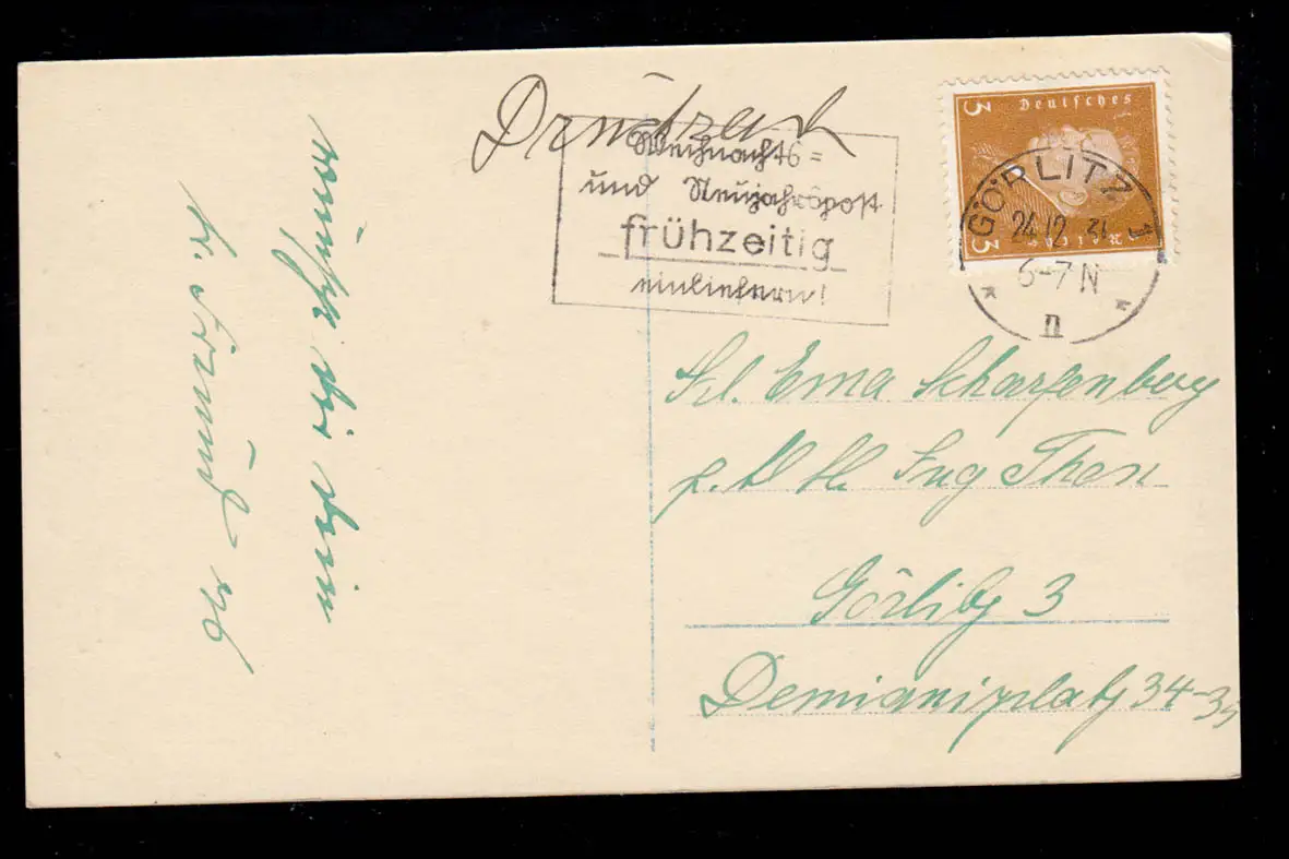 Photo AK Noël: femme souriante avec chapeau et branches de sapin GÖRLITZ 24.12.31