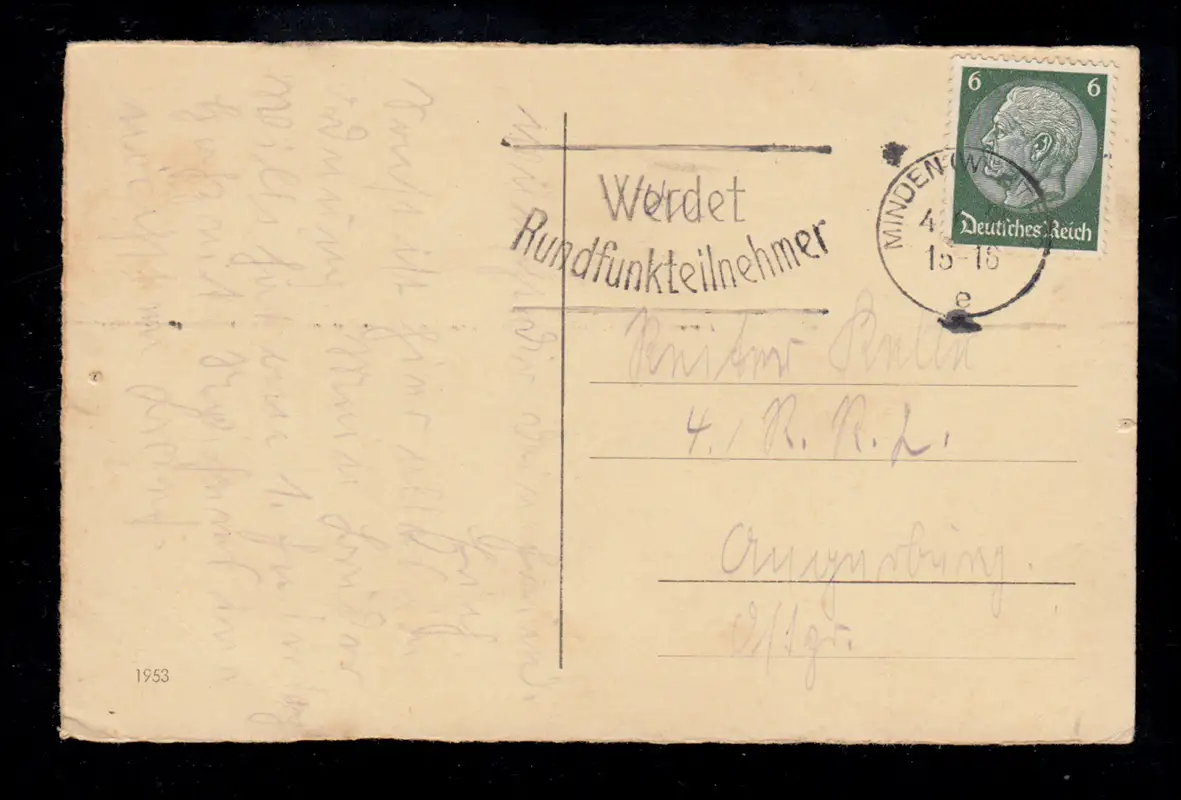 Photo AK Pentecôte: Femme souriante dans la prairie, MINDEN (CUR.) 1938