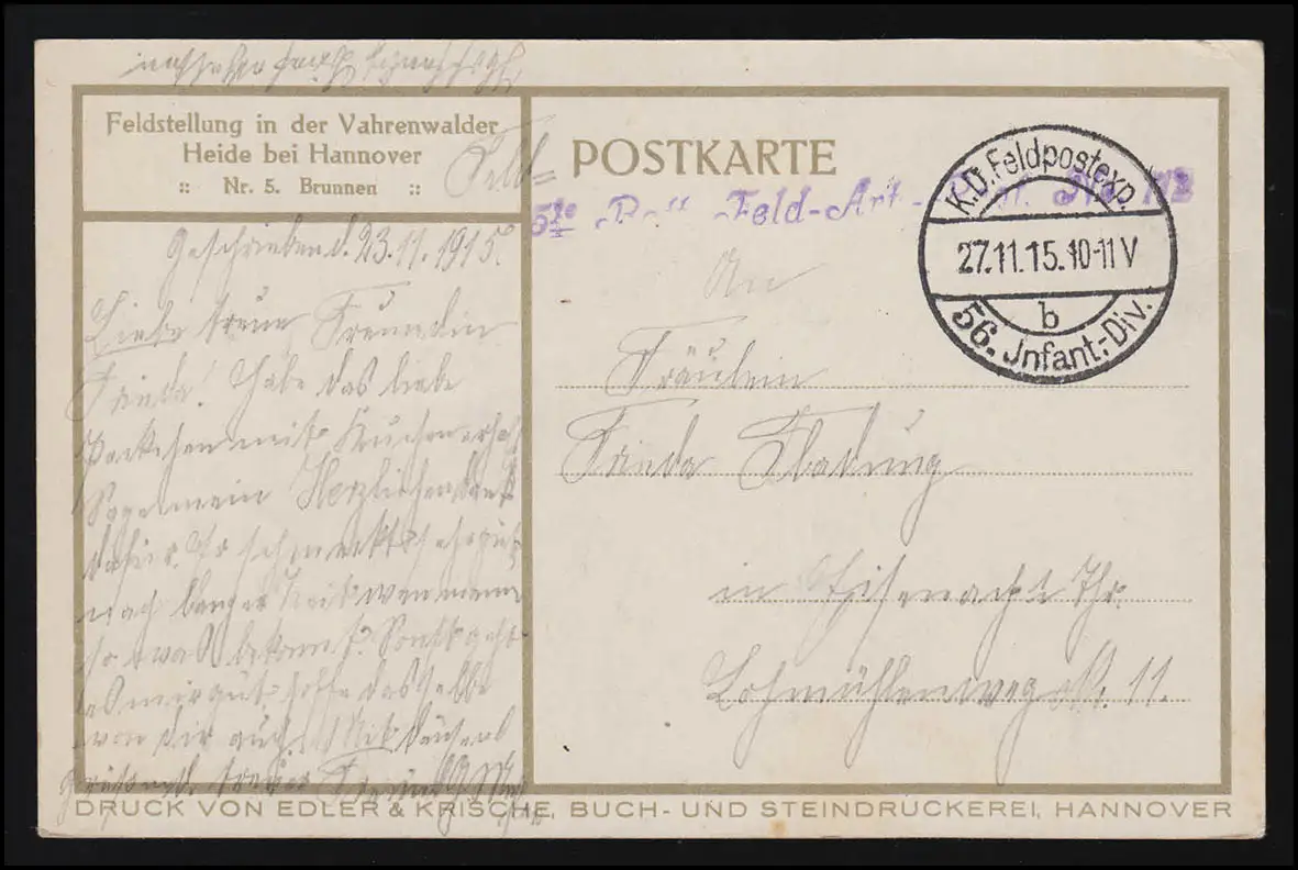 Photo AK Position sur le terrain Vahrenwalder Landes HANNOVER Nr. 5 Fontaines Poste de terrain 27.11.15