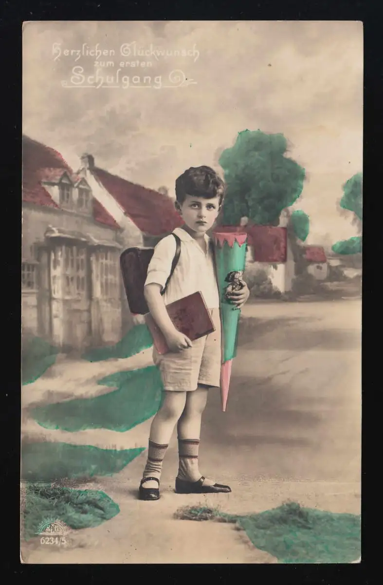 Photo AK R & K L. 6234/3 Knabe Schultütte, Niederoderwitz 20.4.1927