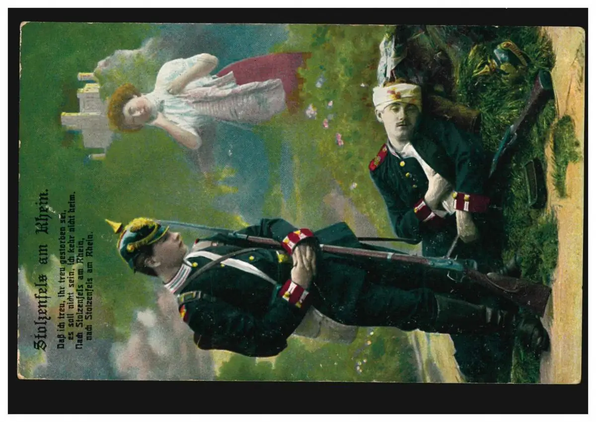 Photo-AK Stolzenfels am Rhein: Au revoir à l'ami, Feldpost 19.7.1915