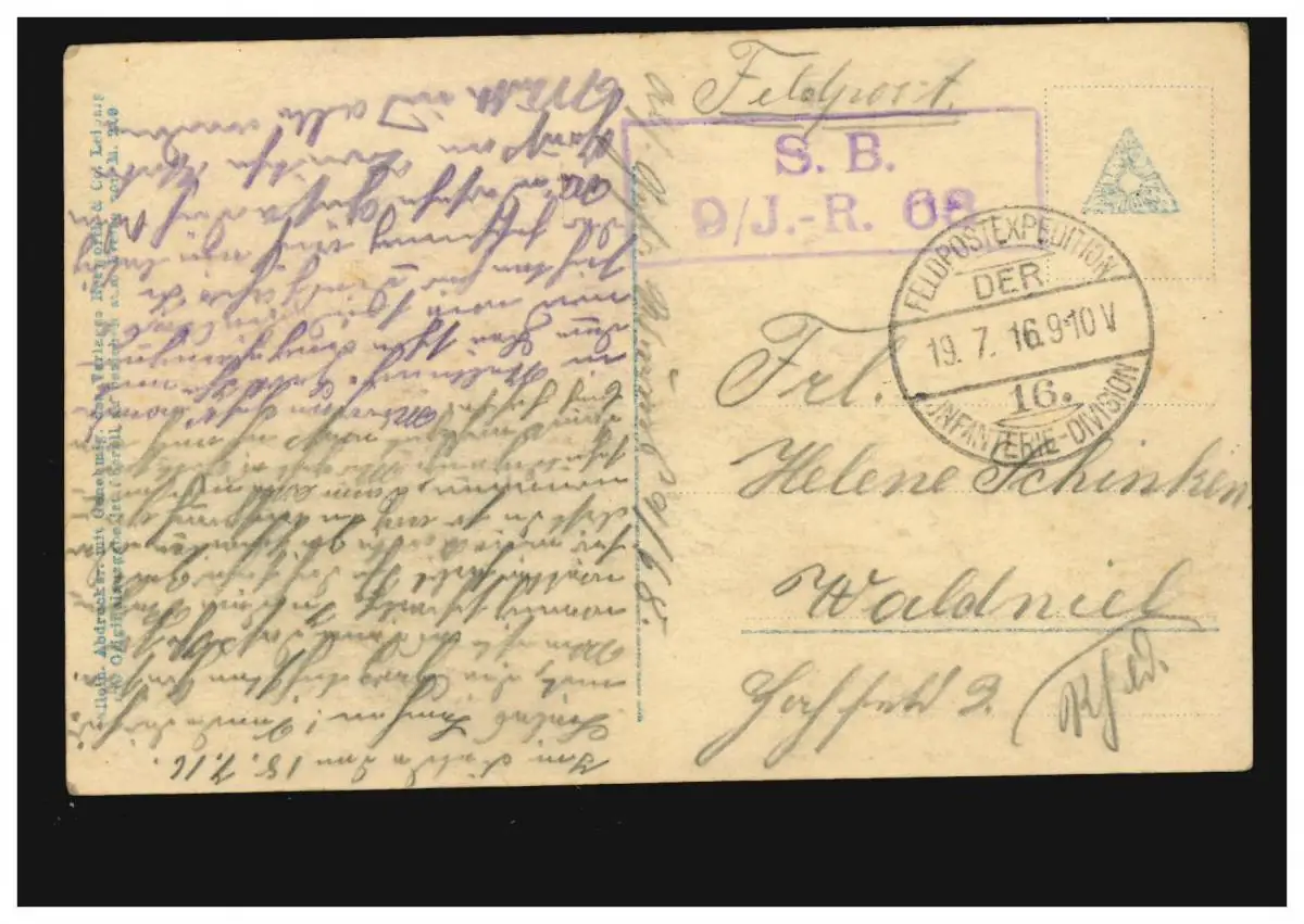 Photo-AK Stolzenfels am Rhein: Mort Kamed, Feldpost 19.7.16 S.B. 9/J-R.68