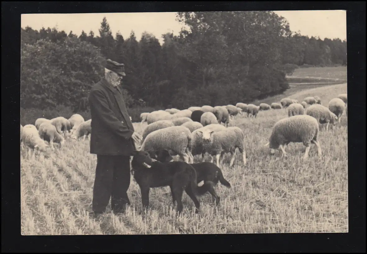 Photo AK animal vers 1960: bergers avec chiens et son troupeau de moutons, inutilisé