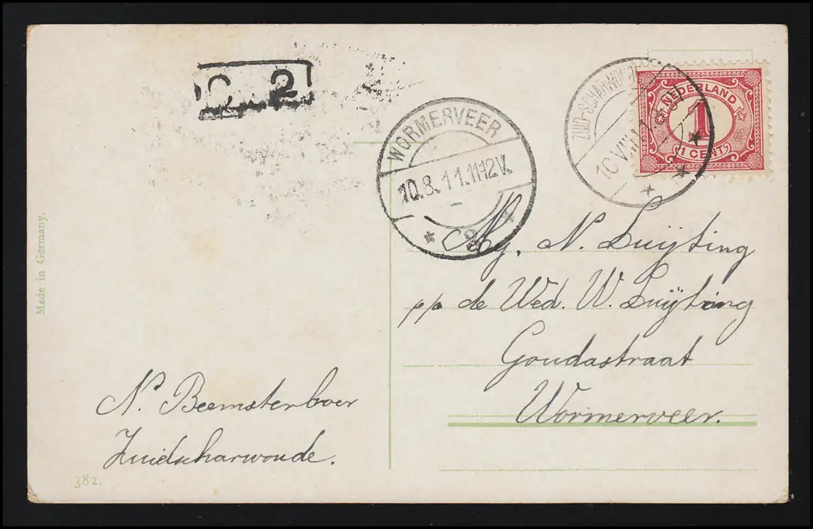 Photo AK fille nourrit les pigeons blancs sur banc, WORMERVEER/ SCHARWOUD 108.1