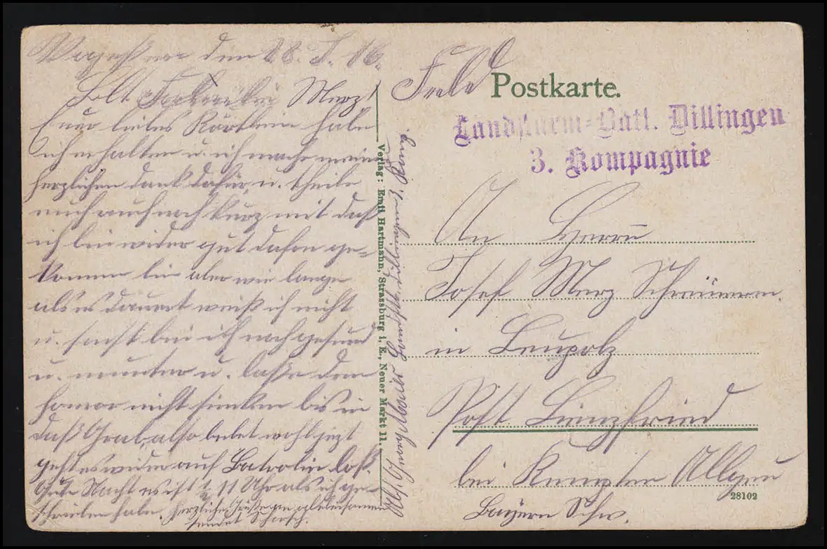 Photo AK n° 28102 MÜLHAUSEN Mulhouse, Landsturm Batl. Dillingen 3. Comp. vers 1916