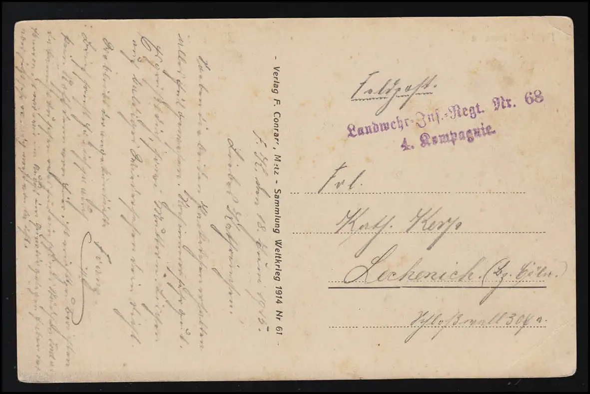 Photo AK n° 61 Pont-à-Mousson / Mussenbrück, Landwehr Inf. Regt. n ° 68 18.6.15