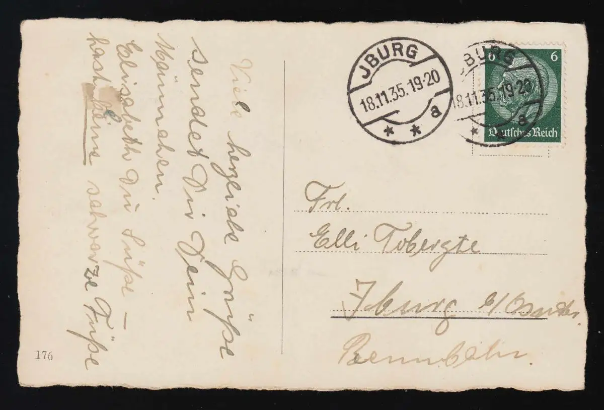 Photo Jeune fille à la main, Fleurs + Favoris Jour des Noms, Iburg 18.11.1935