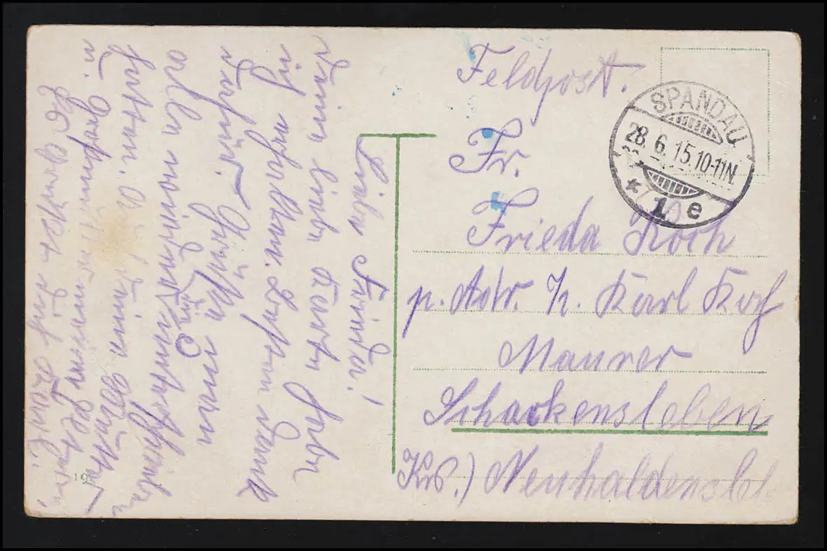 Photo No 19 AK BERLIN Royal Scauhaus Park, Feldpost ESPANDAU 28.6.1915