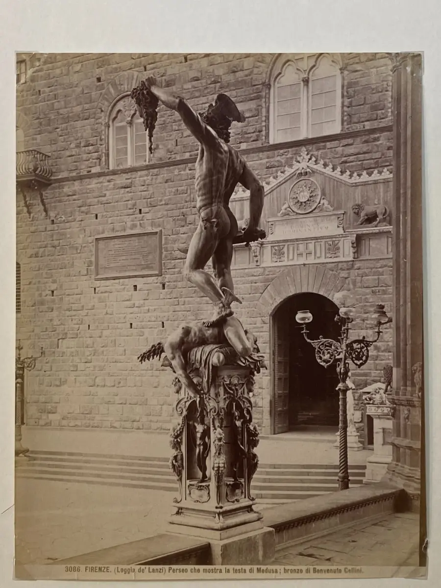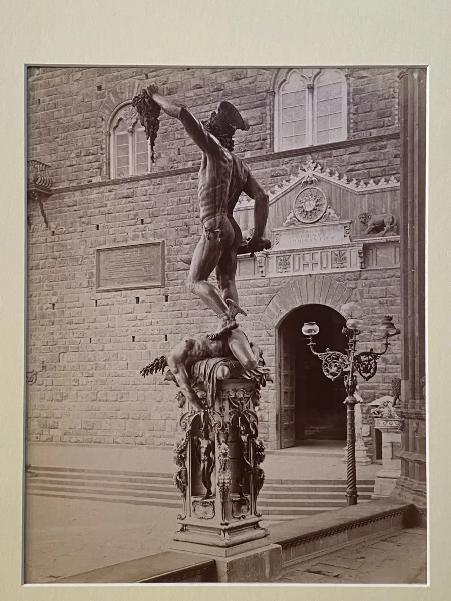 Persée tenant la tête de Méduse, sculpture de Benvenuto Cellini, Loggia dei Lanzi, Piazza della Signoria, Florence, Italie.