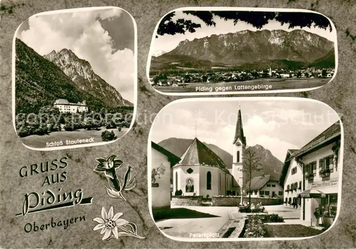 Piding Schloss Staufeneck Piding mit Lattengebirge Petersplatz Piding postalisch gelaufen 1965 Erhaltung siehe scans [WerneD78] WernPID7