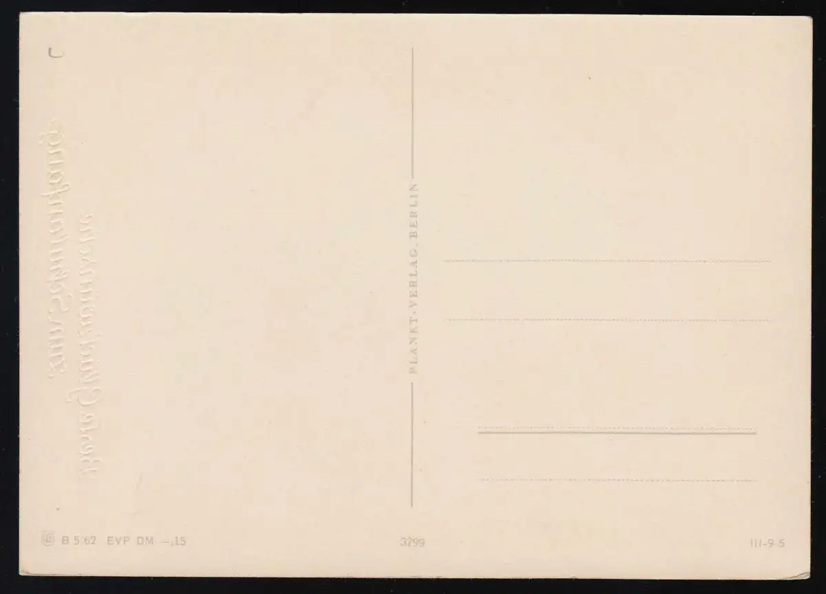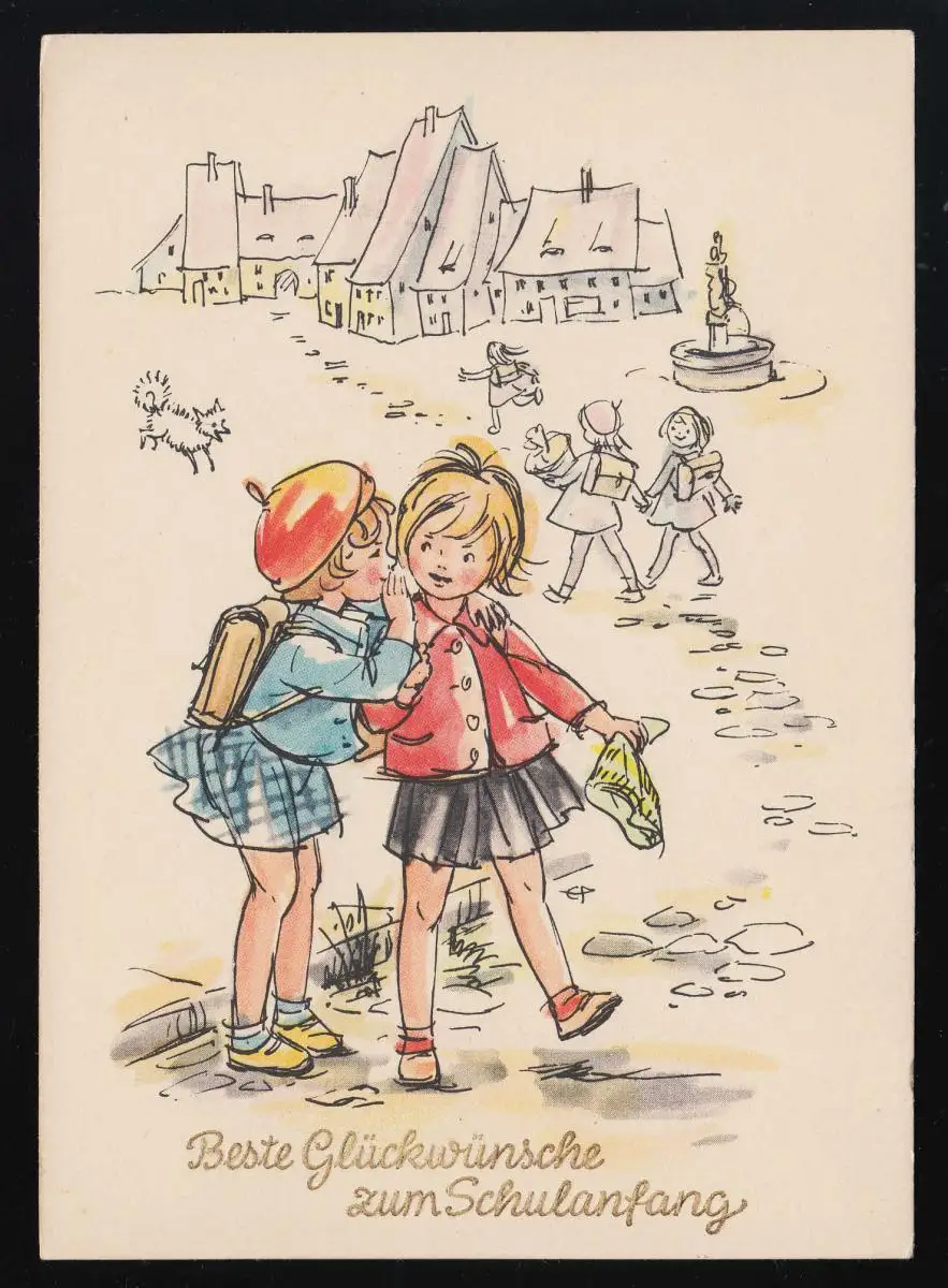 Carte de l'éditeur Planet (RDA) à Berlin. Meilleures félicitations pour le début de votre scolarité en or. Le motif signé "EP." Examen: original Référence produit: 00000000044335>p>Remarque: Cet article n'est disponible qu'une seule fois. Vous recevrez exactement l 'article représenté.