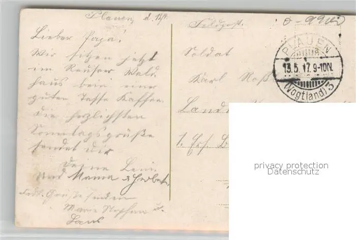 Plauen_Vogtland Koenigliche Amtshauptmannschaft Feldpost Plauen_Vogtland postalisch gelaufen 1917 Erhaltung siehe scans [FriedD77] Frierer