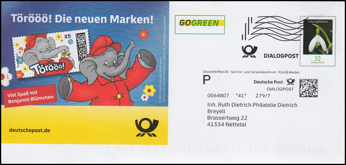 Lettre de plus Post Fleur Bouquet de neige 32 cents: Blumette de Benjamin 2022