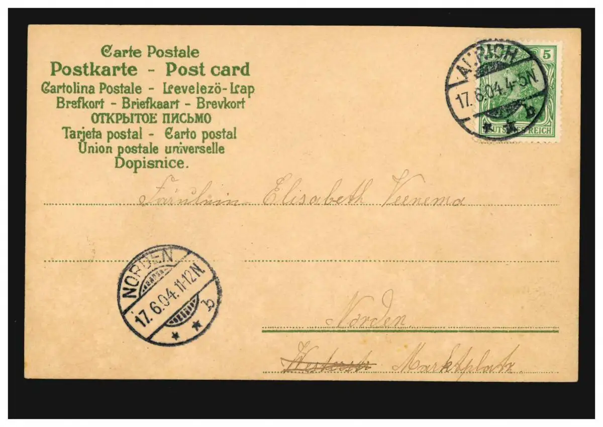 Poésie AK branche de violette poème Salutations parfumées, AURICH 17.6.04 vers NORD 17.6.2.