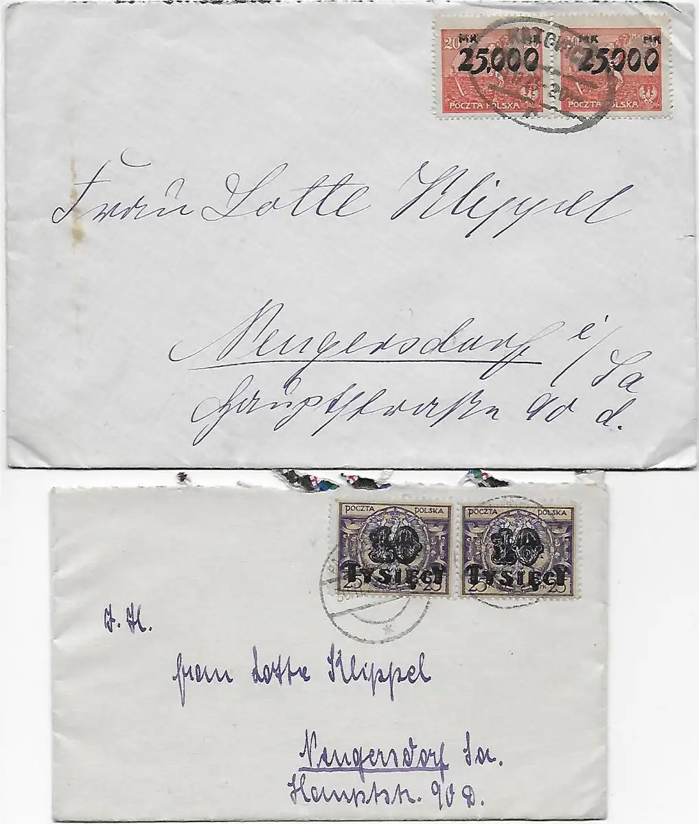 Pologne: 2x Lettres Période d'inflation Bismarckhütte vers Neugersdorf