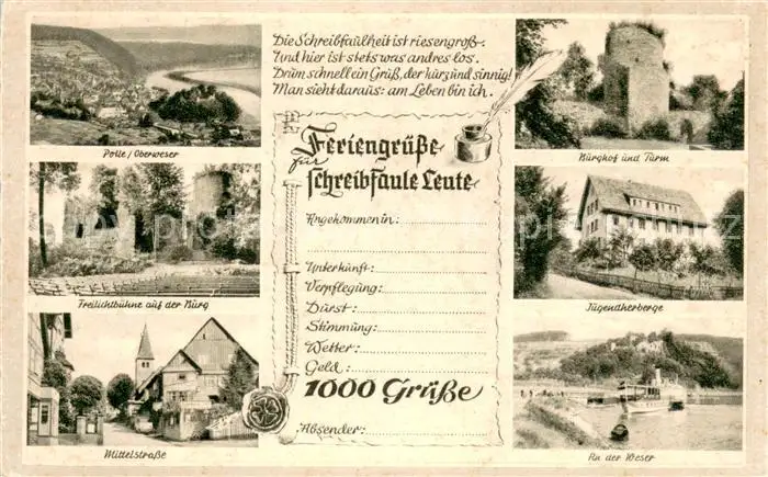 Polle_Oberweser Freilichtbuehne auf der Burg Mittelstrasse Burghof und Turm Jugendherberge Weserpartie Polle_Oberweser postalisch nicht gelaufen nach 1965 Erhaltung siehe scans [WerneD78] WernPID7