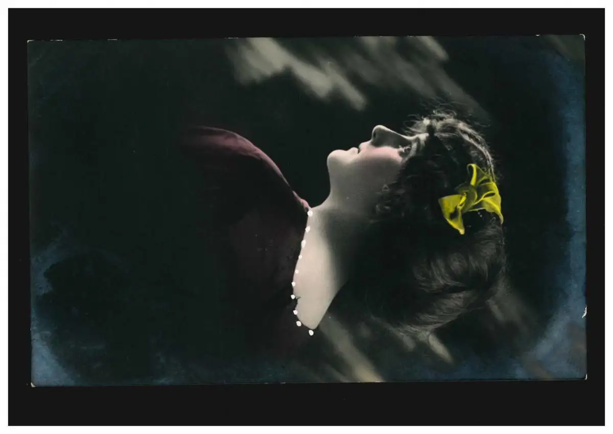 Portrait de femme mode AK en robe rouge boucle de cheveux jaune, CÖLN-KALK 10.12.1913