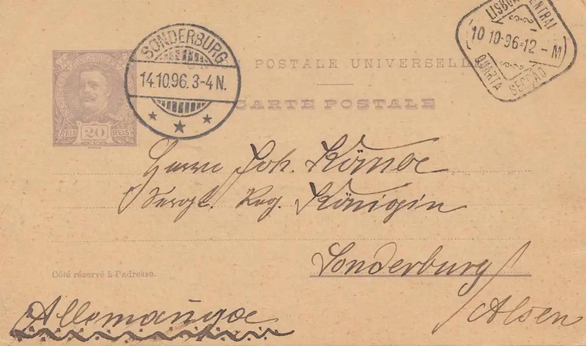 Portugal: 1896: Lisboa vers Sarzbourg - île d'Alsen