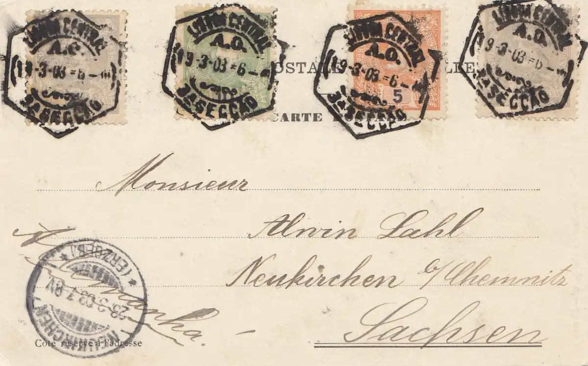 Portugal: 1908: Carte par Neukirchen/Saxe