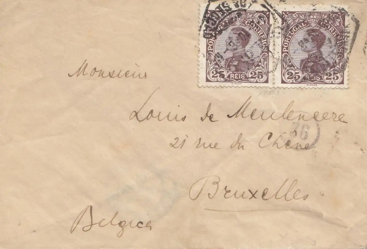 Portugal: 1910: Lettre à Bruxelles.