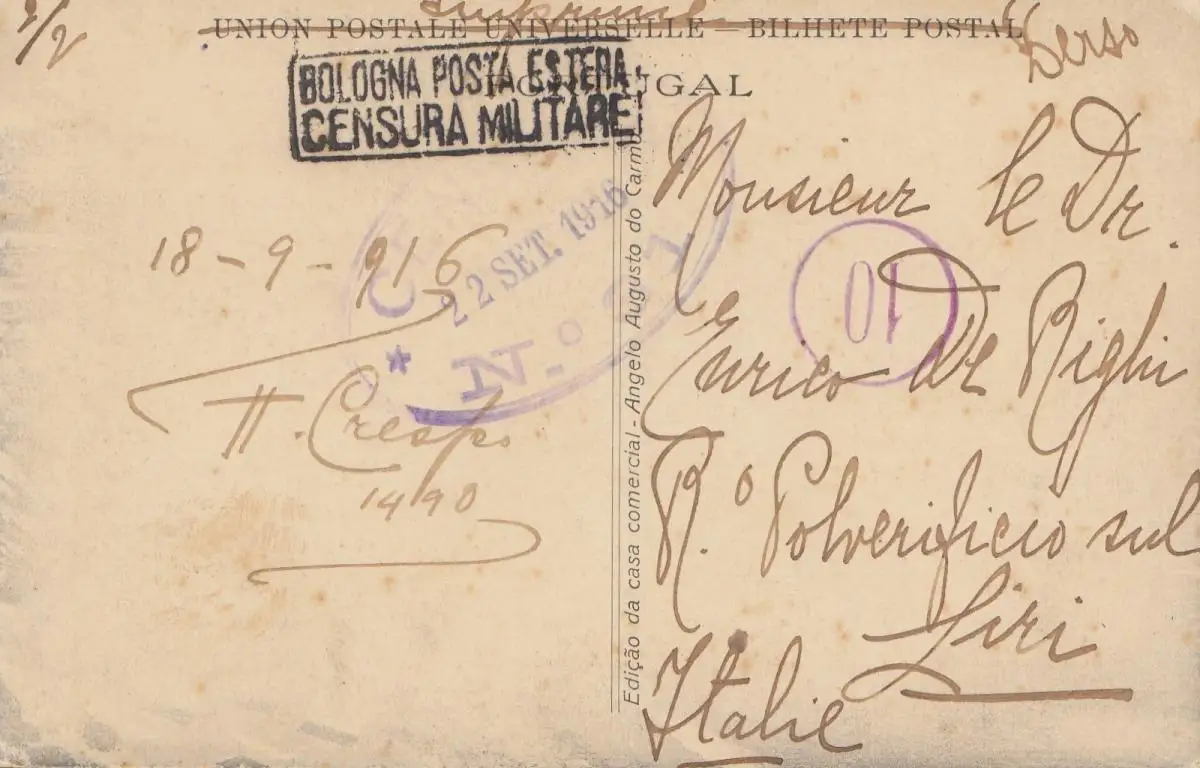 Portugal: 1916: Carte de vue Ericeira vers l'Italie, censure