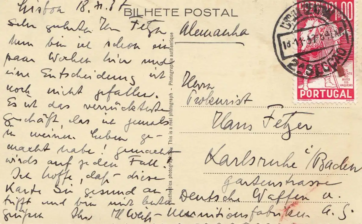 Portugal: 1937: Carte de Lisbonne après Karlsruhe