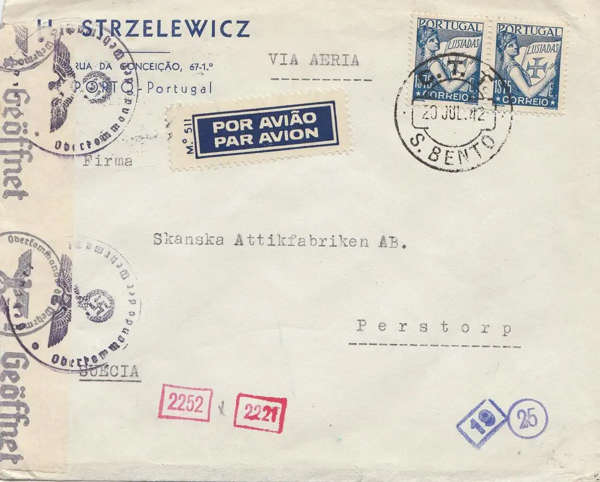 Portugal: 1942: S. Bento vers Perstorp/Suède - censure